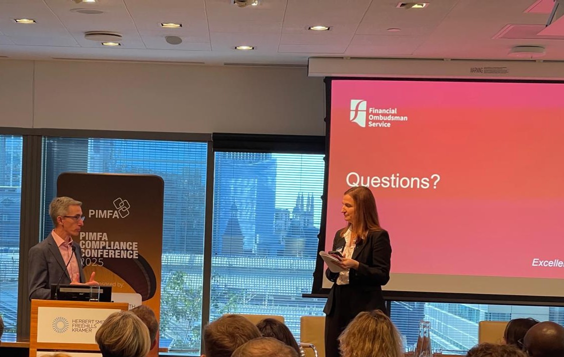 Andy Wright, Ombudsman Leader, FOS with PIMFA’s Alex Roberts, Head of Regulatory Policy and Compliance.